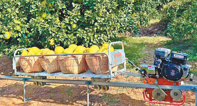 柚子下山坐“快轨”。“以前运柚子,要靠肩挑背扛,辛苦不说,费时费工,现在果园里安装了单轨山地果园运输机,效率翻了好几倍。”雁洋镇南福村柚农黄裕亮轻点按钮,载着700多斤柚子的运输机稳稳启动,沿着轨道往前奔去。“运700多斤柚子,以往要8个人背,半个多小时才能到山下。用运输机的话,只要10分钟。”黄裕亮感叹。
